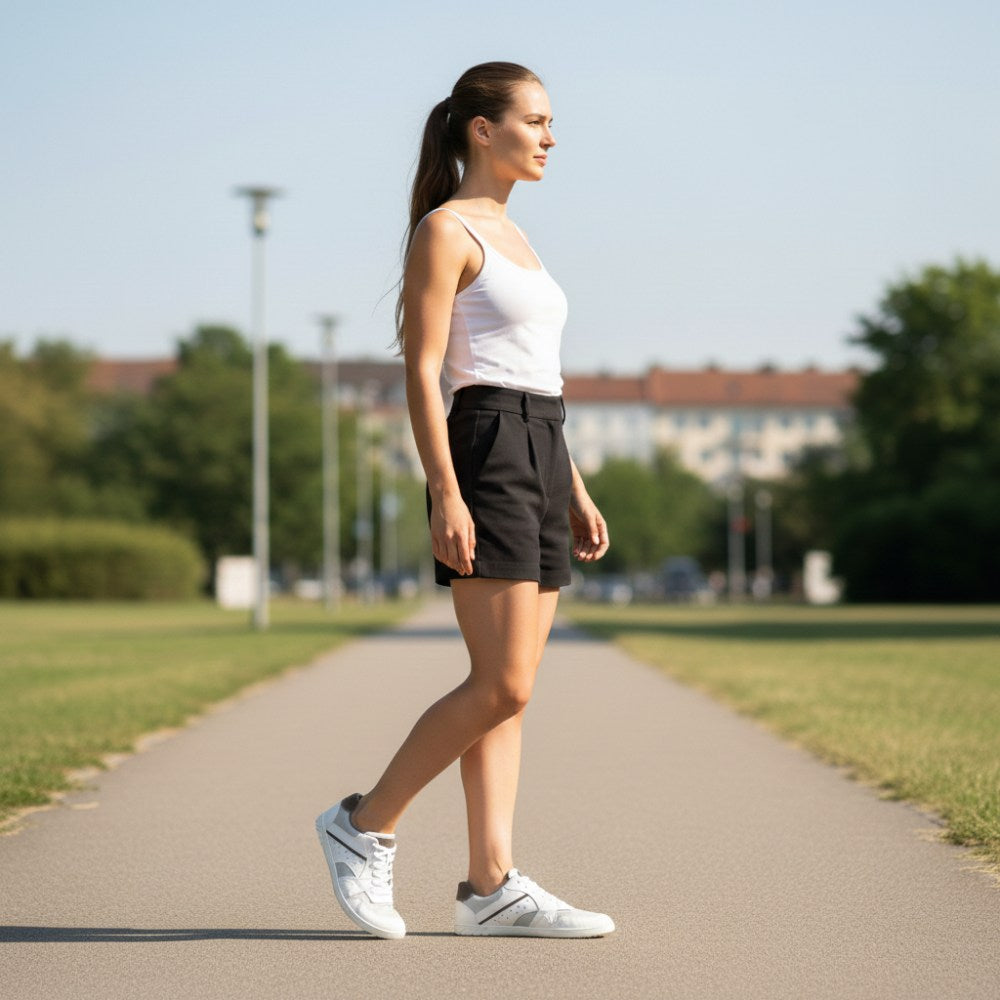 - Gummisål med nulhæl, således at lindre rygsøjlen og beskytte leddene, understøtter den naturlige kropsholdning