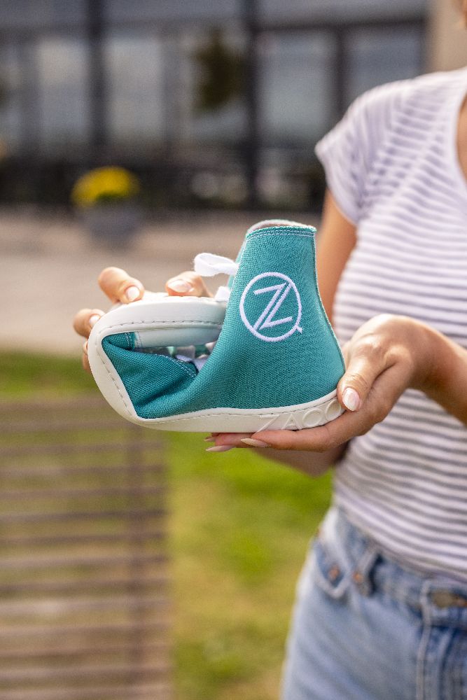 Lavet af turkisblå denim tilbyder du ikke kun et frisk, slående design, men også alle fordele ved en barfodet sko. Med den hvide tåhætte og de hvide skolisser ser de sportslige ud og på samme tid moderne.