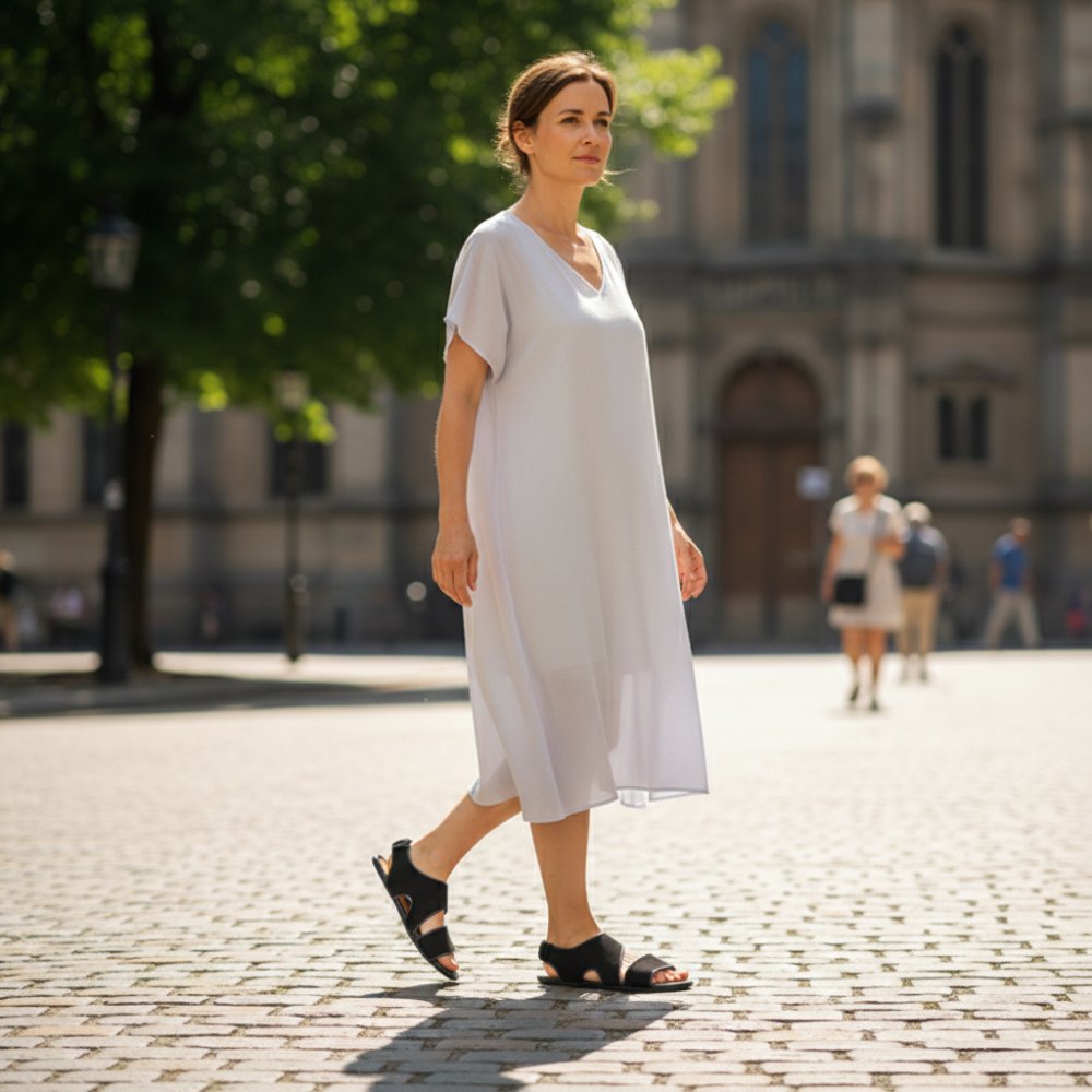 Takket være den barfodede teknologi kan du nyde en naturlig løbende følelse med Cisqa Black, der styrker dine fødder og forbedrer din holdning uden at opgive moderigtigt udtryk. Disse sandaler er designet på en sådan måde, at de tilpasser sig perfekt til din fod og på samme tid tilbyder et elegant, minimalistisk design, der passer til enhver lejlighed.