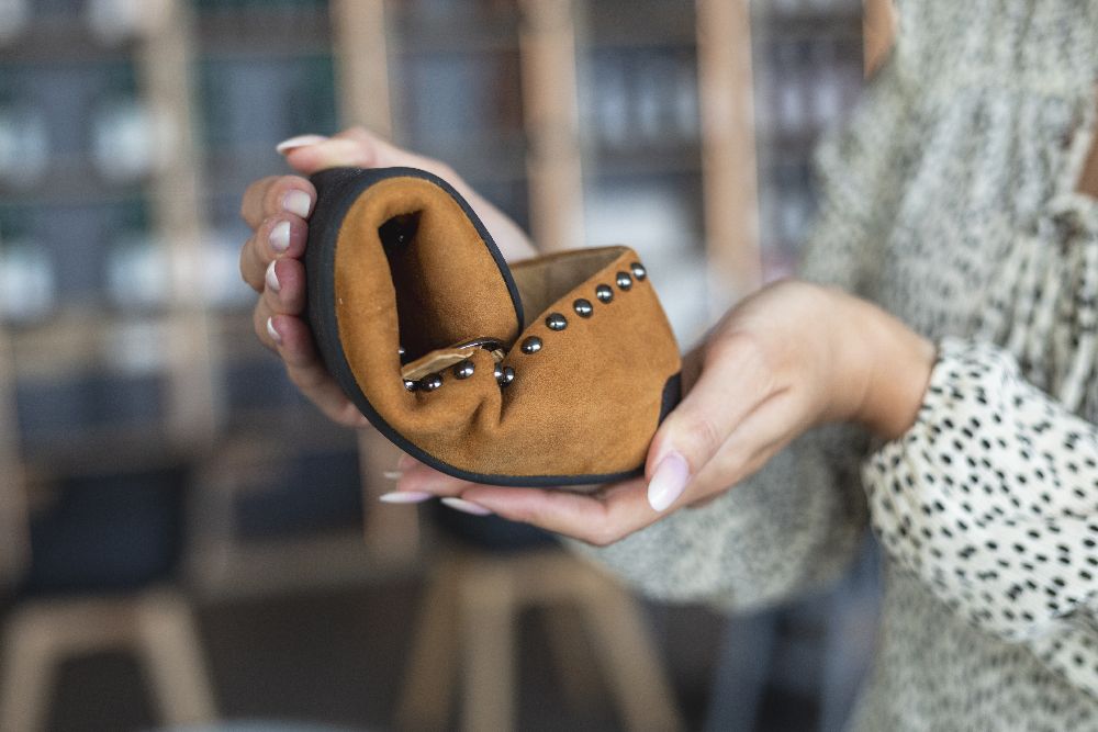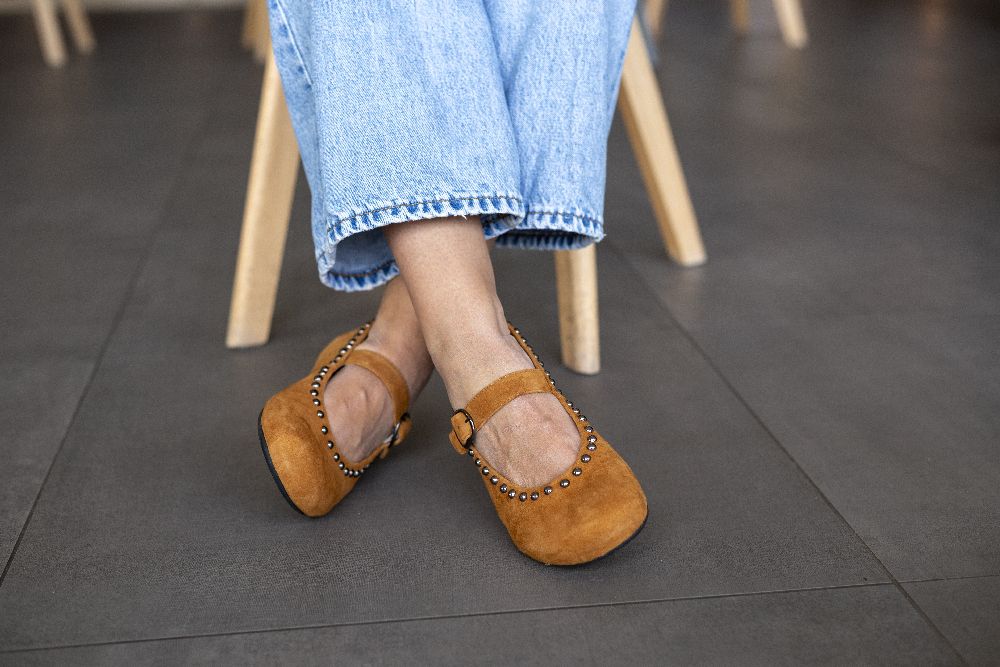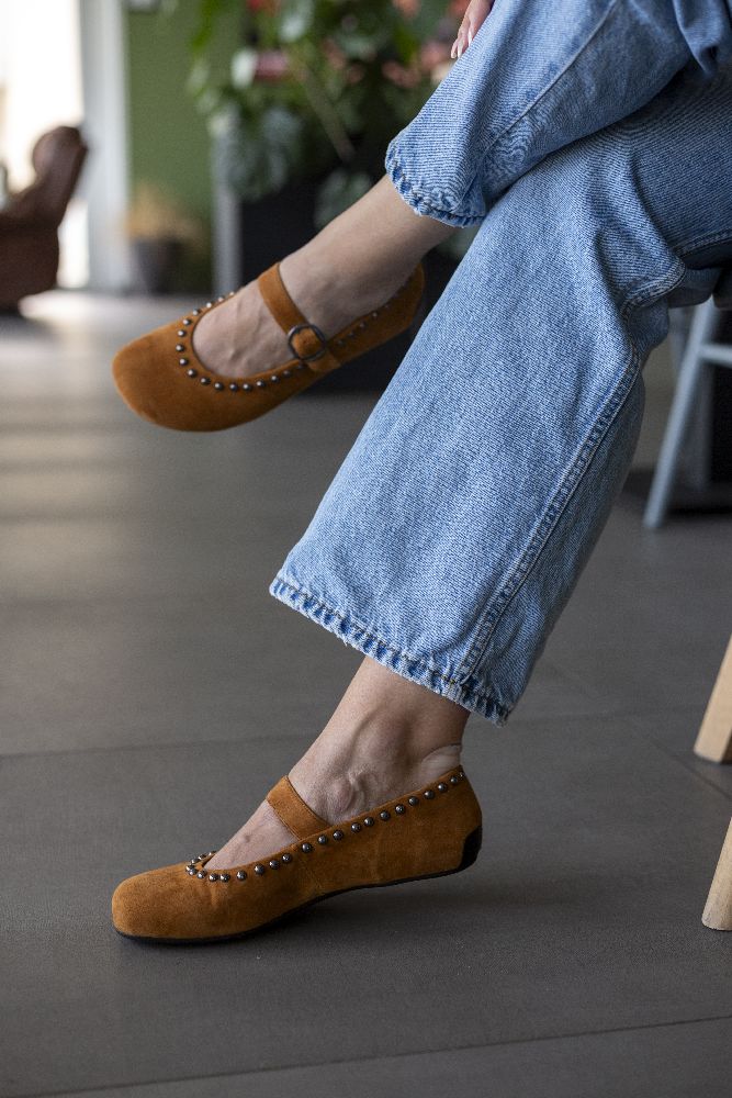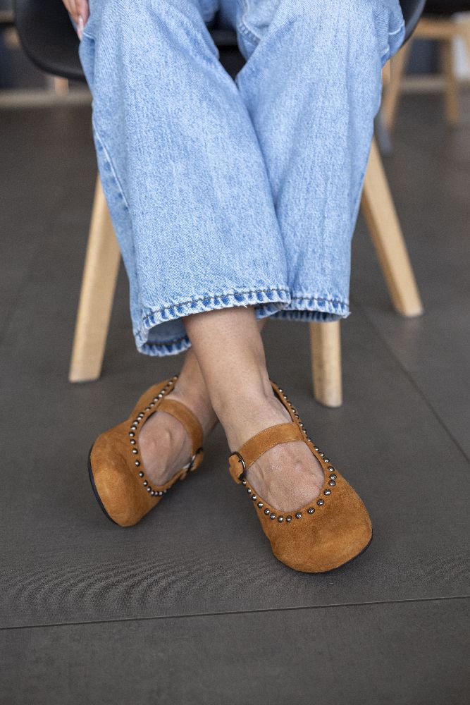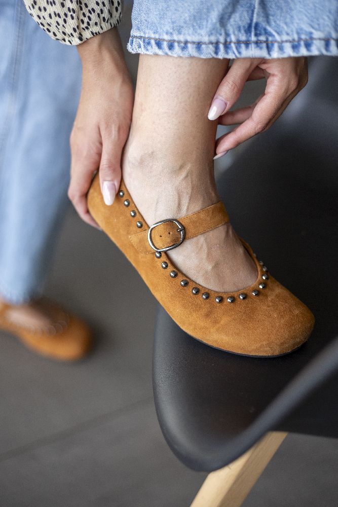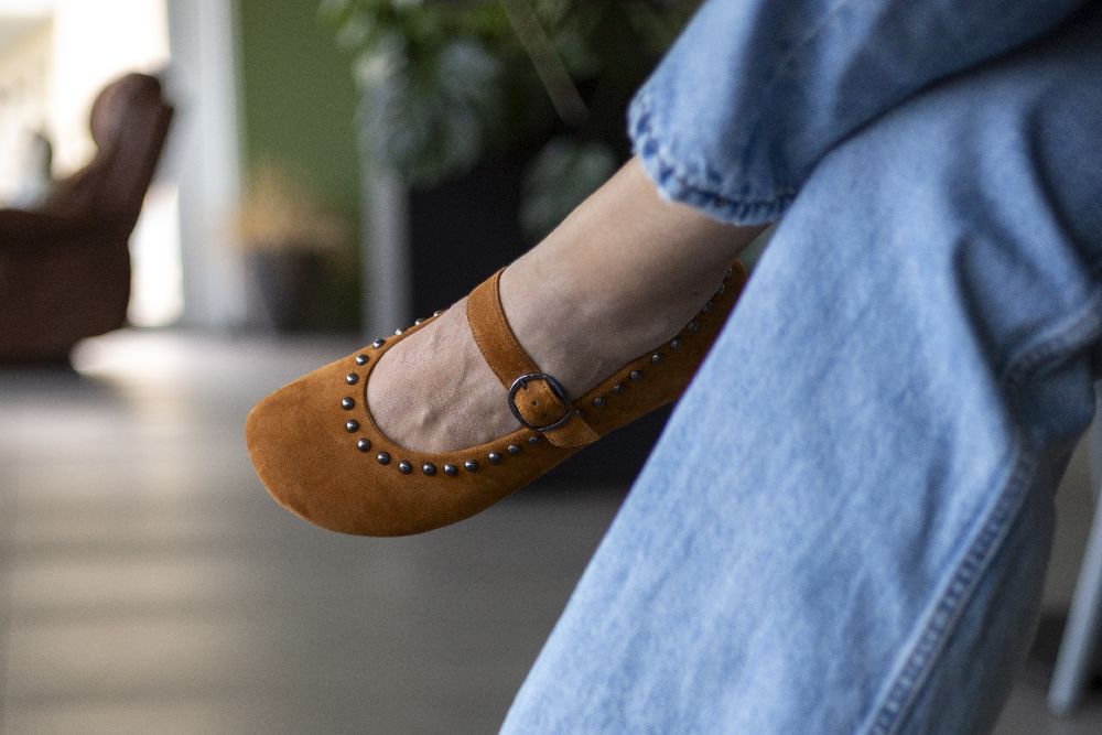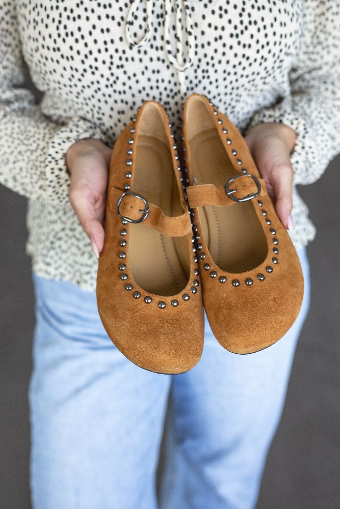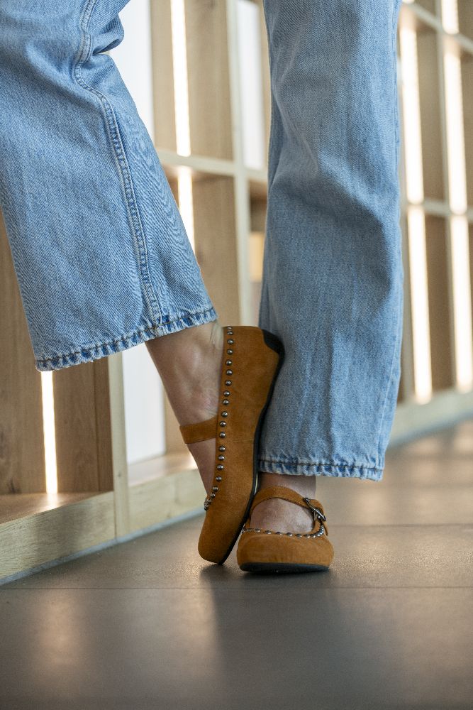 Vores Dieqo Brown er vores splinterny ballerin -sko lavet af brun ruskind. Dette smykke er foret med runde nitter og giver ethvert tøj et strejf af glamour uden at forudse den utrolige trøst, som du er vant til fra vores barfodede sko.