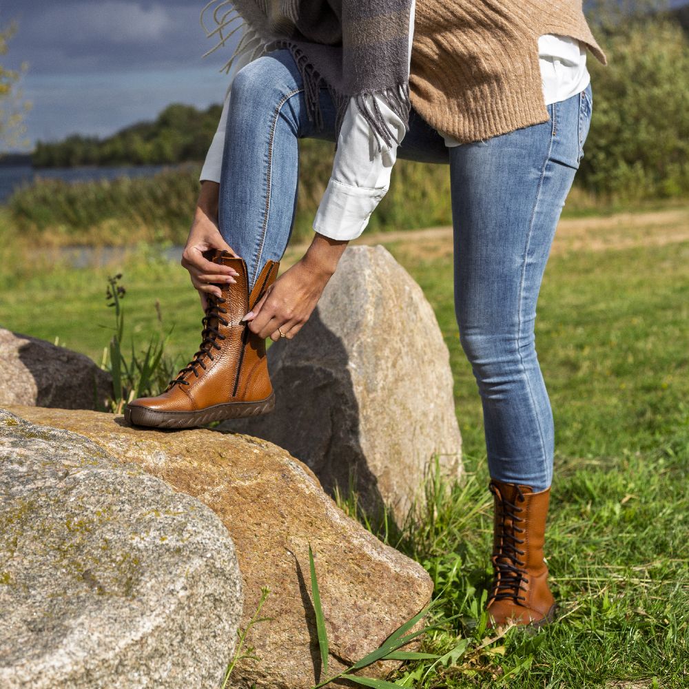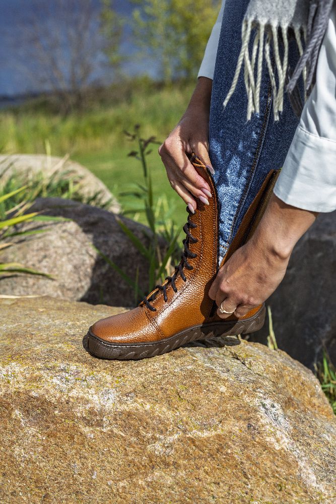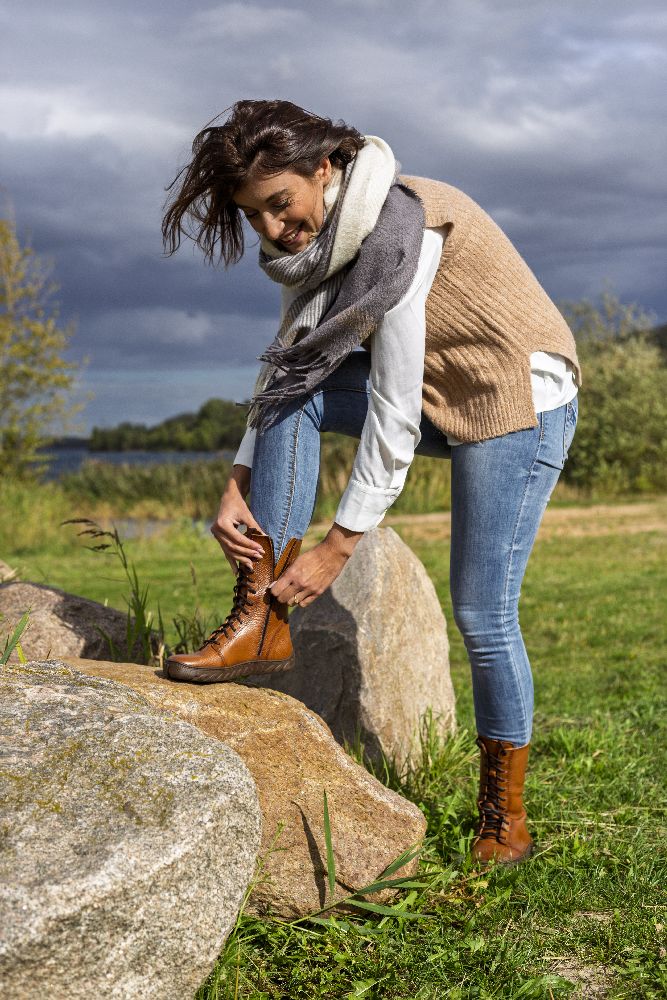Disse støvler i en smuk brun tone præsenterer sig i et tidløst design med en praktisk snøring og en lynlås på Bereau for enkel stramning og start. De er lavet af premium Nappaleder og tilbyder ikke kun et fremragende look, men også holdbarhed og komfort.