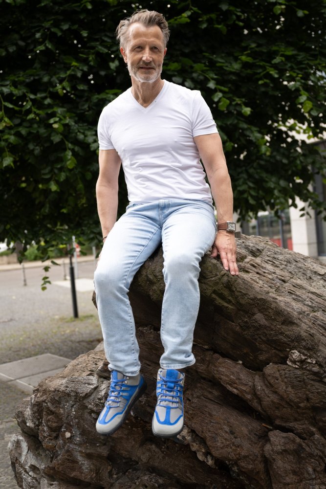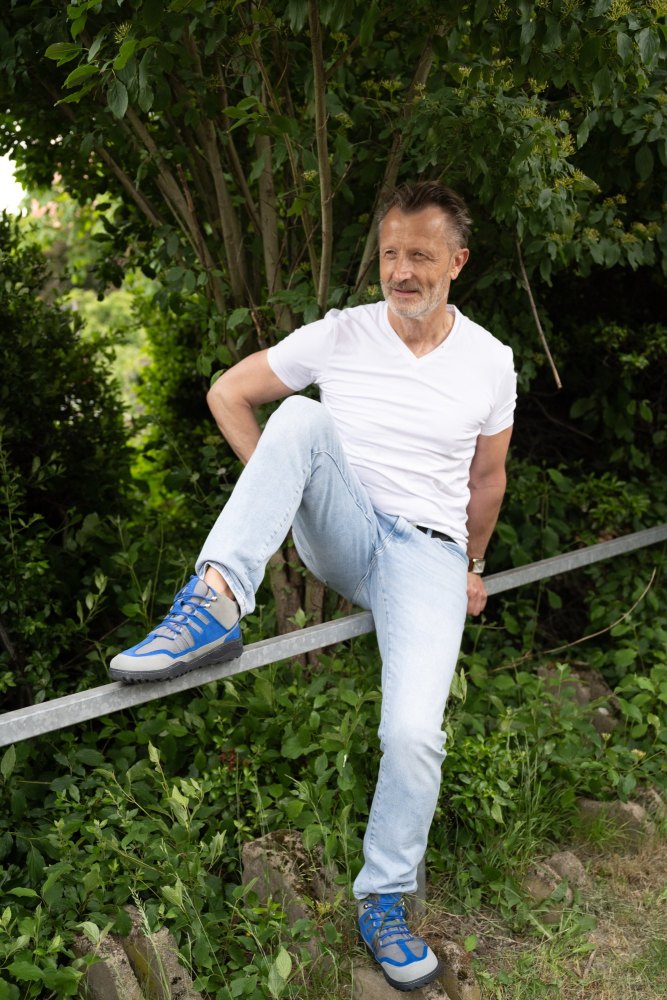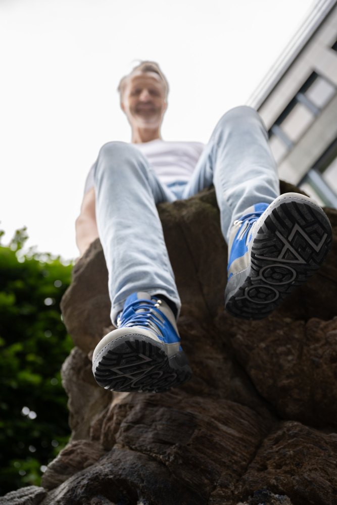 Den stilfulde blanding af farve lavet af grå og blå ser sporty-frisk ud, men er også subtil nok til at bære den barfodede sko som en hverdagssko. I dårligt vejr kan du stole på 100% på esqape, fordi dine fødder forbliver helt tørre takket være den vandtætte indre membran. Den høje åndedrætsaktivitet sikrer det bedste fodklima. Så det kan blive varmt uden dine fødder at gløde.