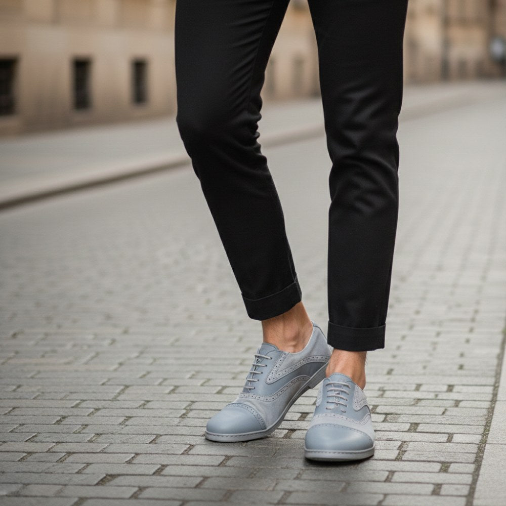 Denne klassiske forretningssko er tidløs og passer perfekt til dragt, men kan også let kombineres med jeans for at bringe mere elegance ind i det afslappede look. For Qentle bruger vi velour- og nappa-læder af høj kvalitet, der ser særligt ædel ud på grund af linjerne og indramning af broguinger og strækker visuelt den barfodede sko.