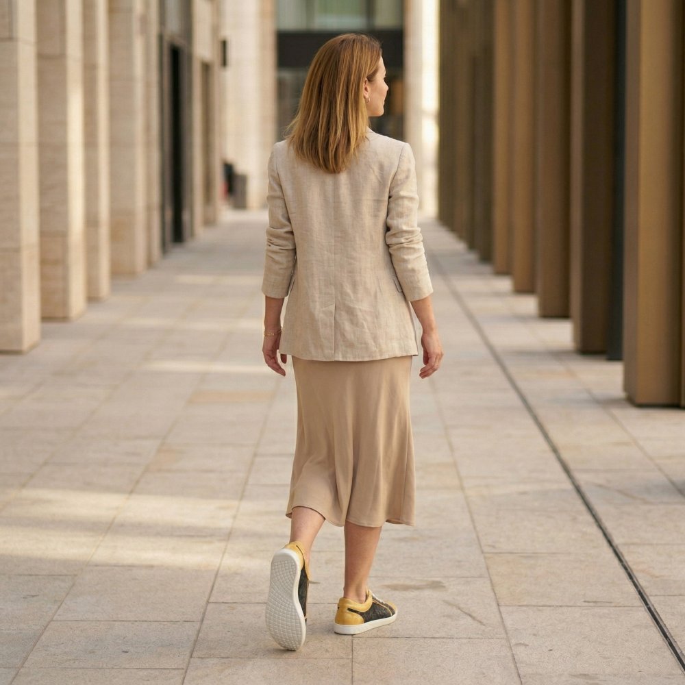 - Gummisål med nulhæl, således at lindre rygsøjlen og beskytte leddene, understøtter den naturlige kropsholdning