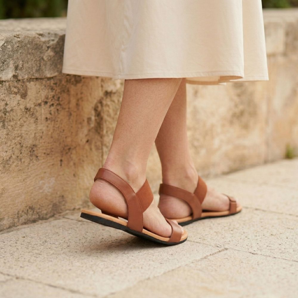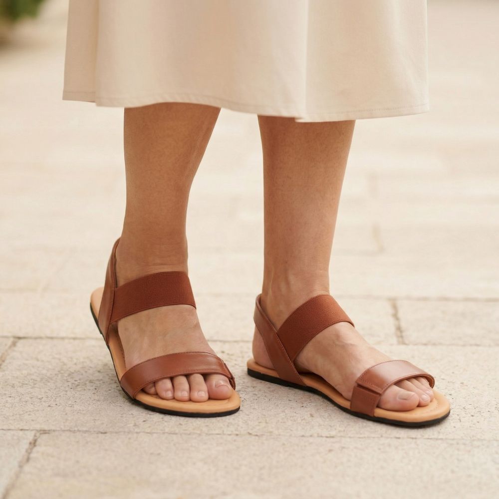 Hver gåtur er ren glæde på den komfortable og superfleksible gummisål. I disse barfodede sandaler er du altid let og i godt humør, tag dine stier.