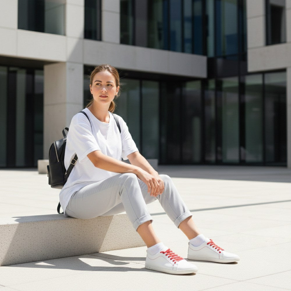 Leder du efter en moderne sneaker, som du altid bruger til et øje -catcher? Så er vores model Straq White din nye barfodsko. Alt rundt i ædle hvide og med lyse røde snørebånd bliver denne sneaker et særligt stilfuldt valg!